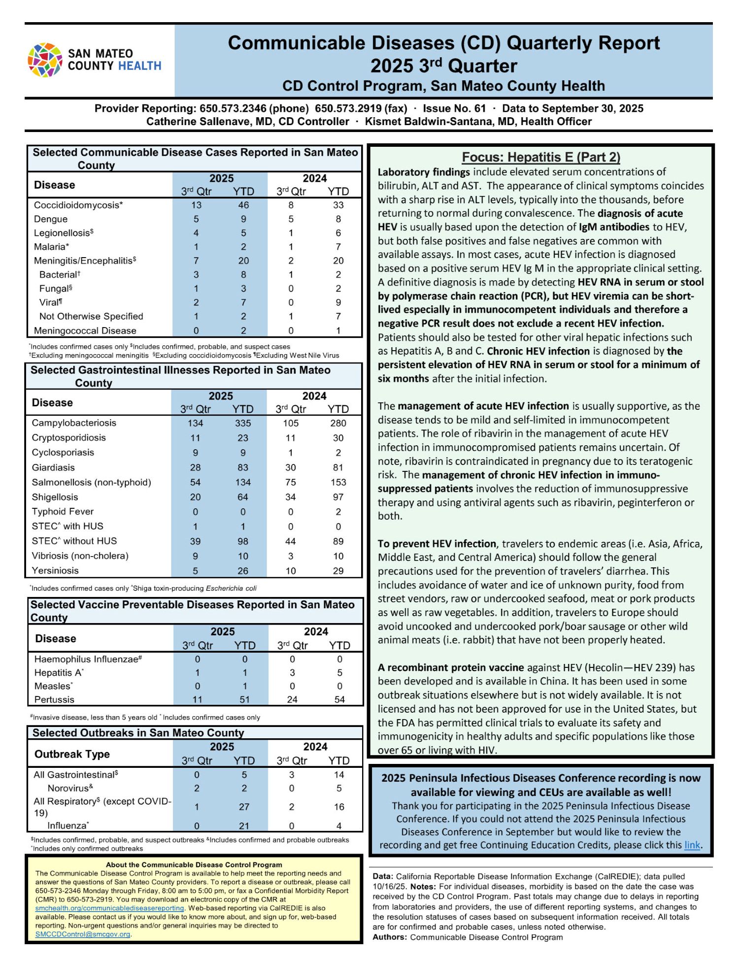 Communicable Diseases Quarterly Report 2025 3rd Quarter