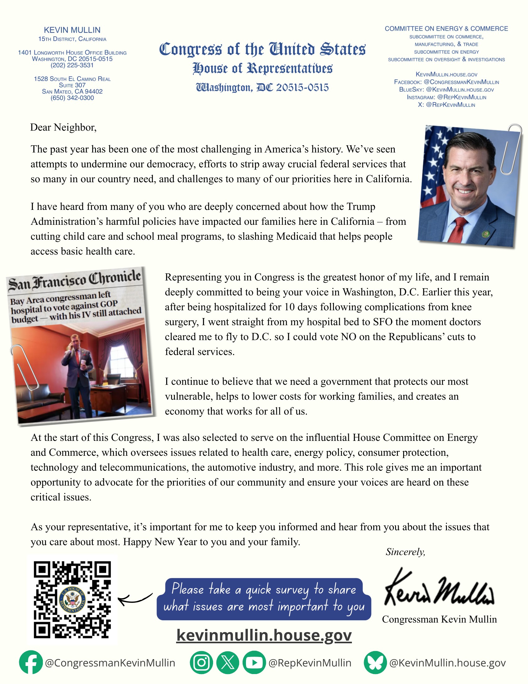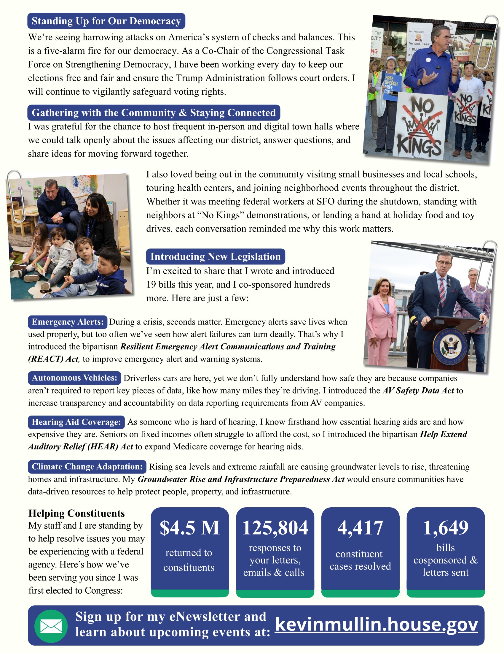 CA U.S. Congressman Kevin Mullin 2025 Year End Report